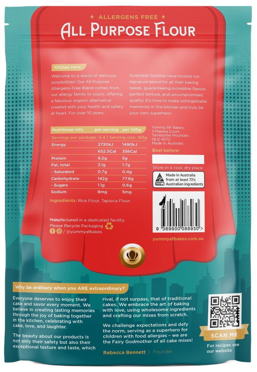 A kitchen essential reimagined—our All Purpose Flour is light, versatile, and allergy-friendly, making every bake safe, delicious, and worry-free.